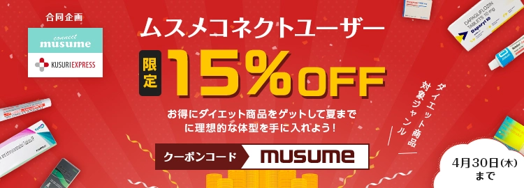 ダイエット商品をお買い上げの際に下記クーポンコードを入力していただくと、15%オフが適用されます。